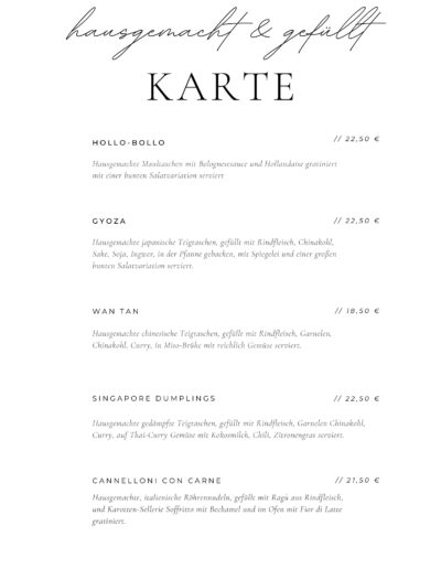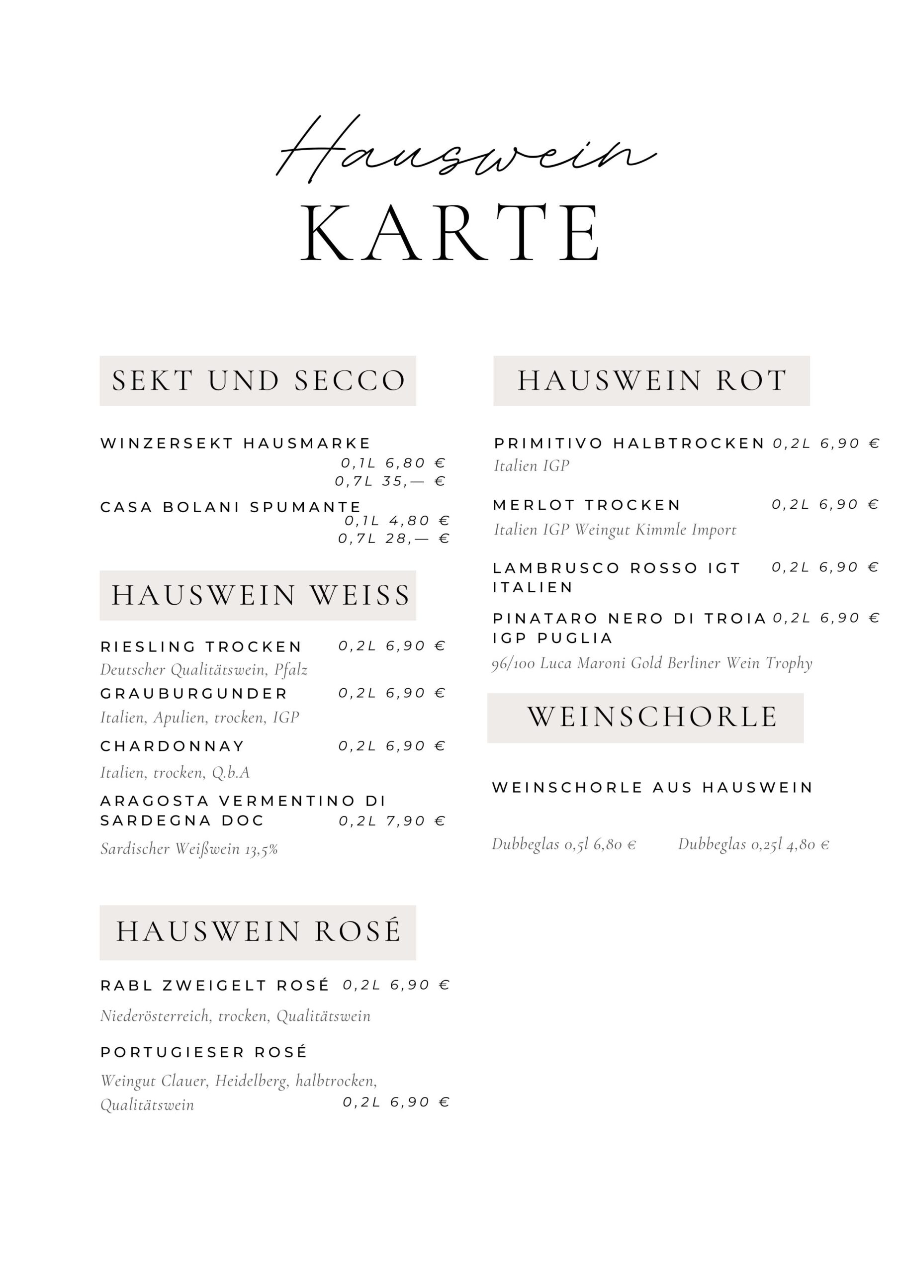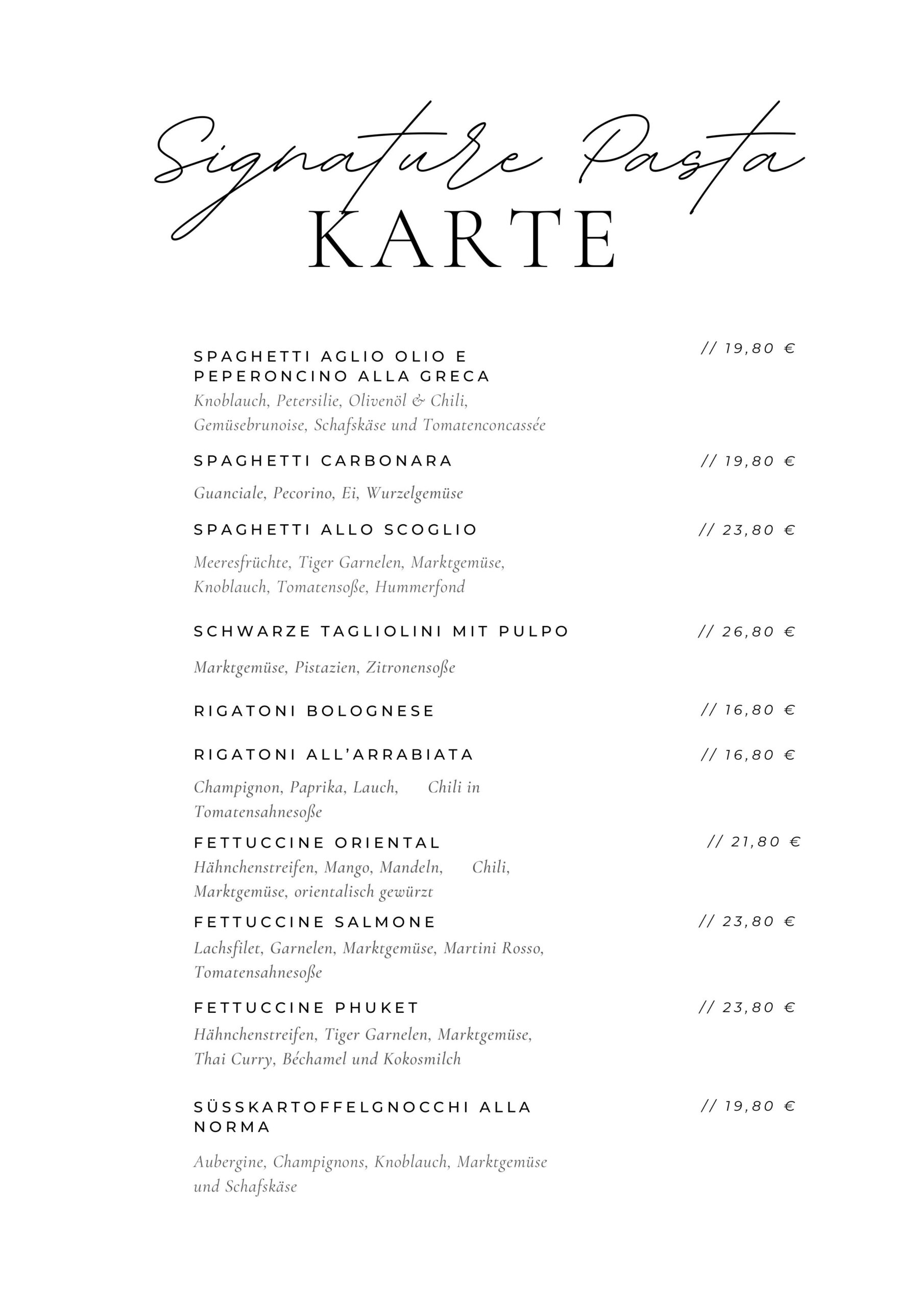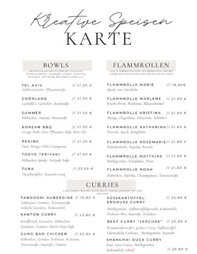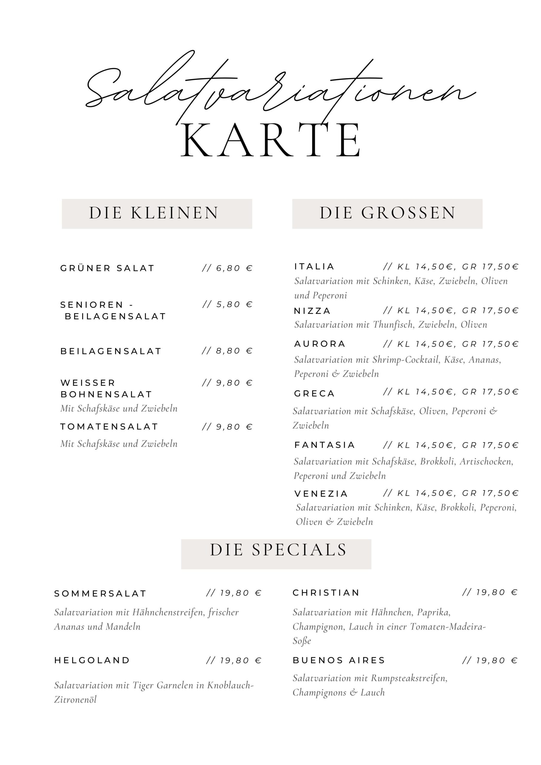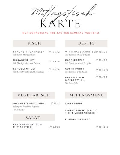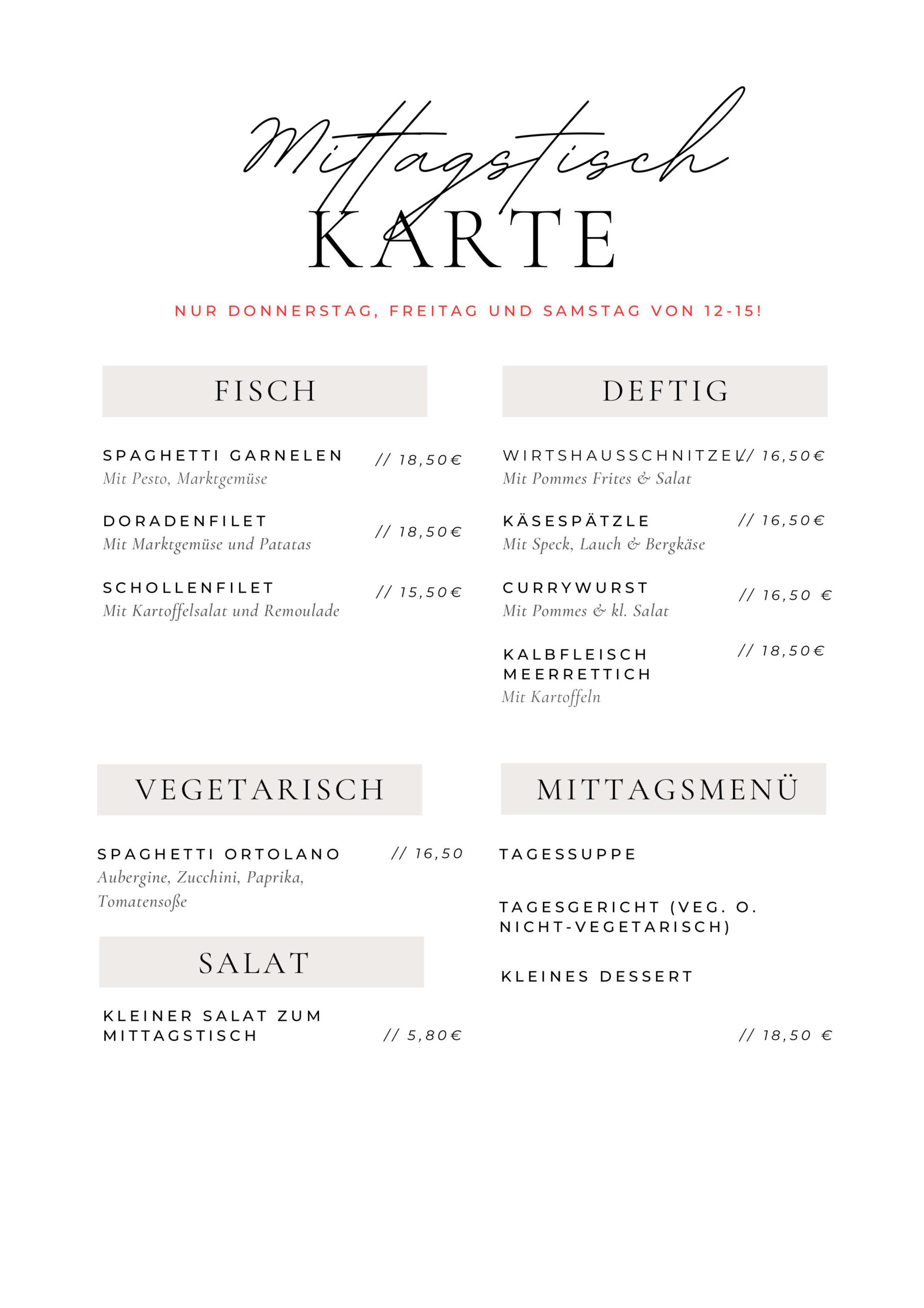 „Im Restaurant oder mit Reservierung. Sie können immer zu unseren Öffnungszeiten unsere Speisen bestellen.“