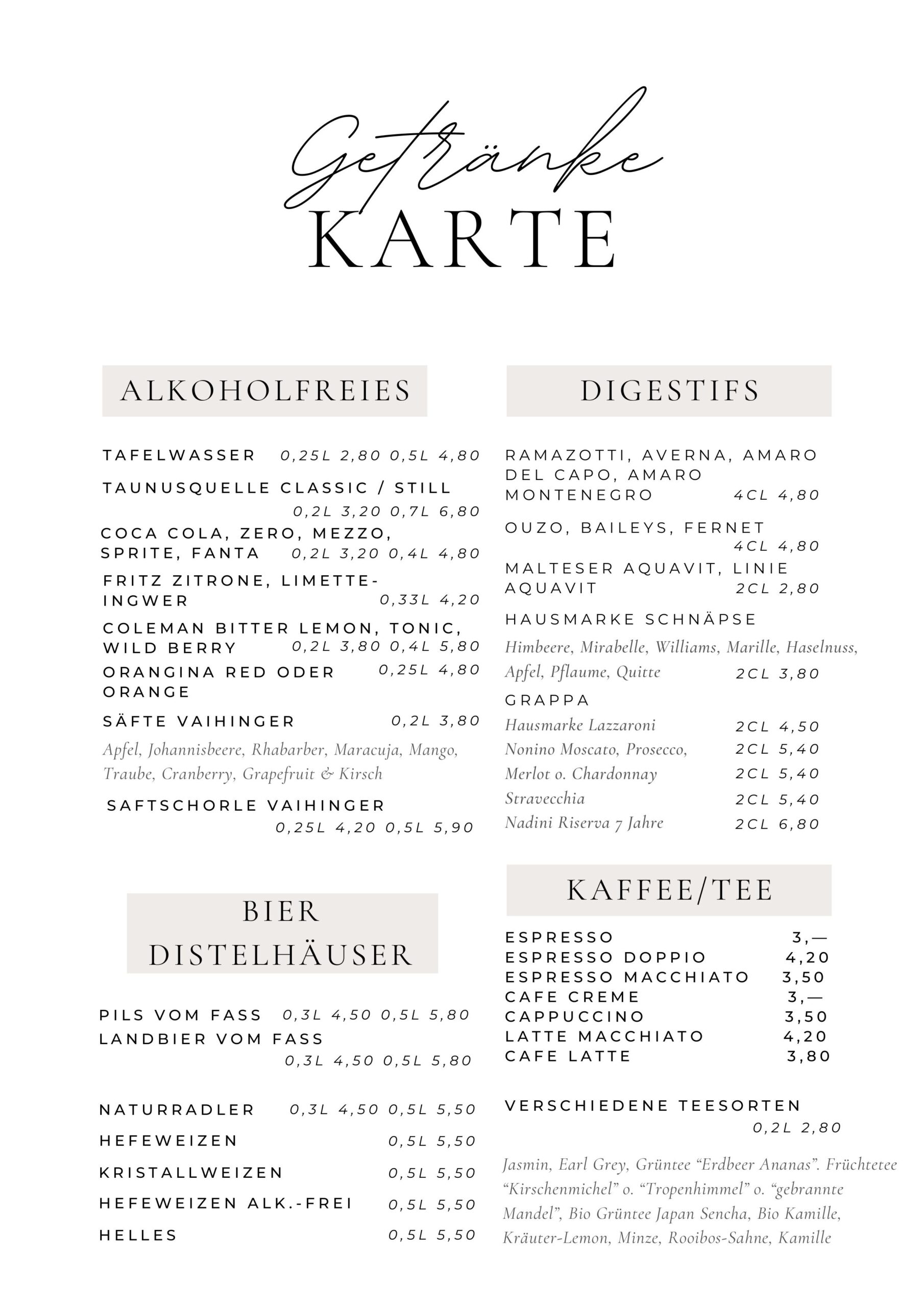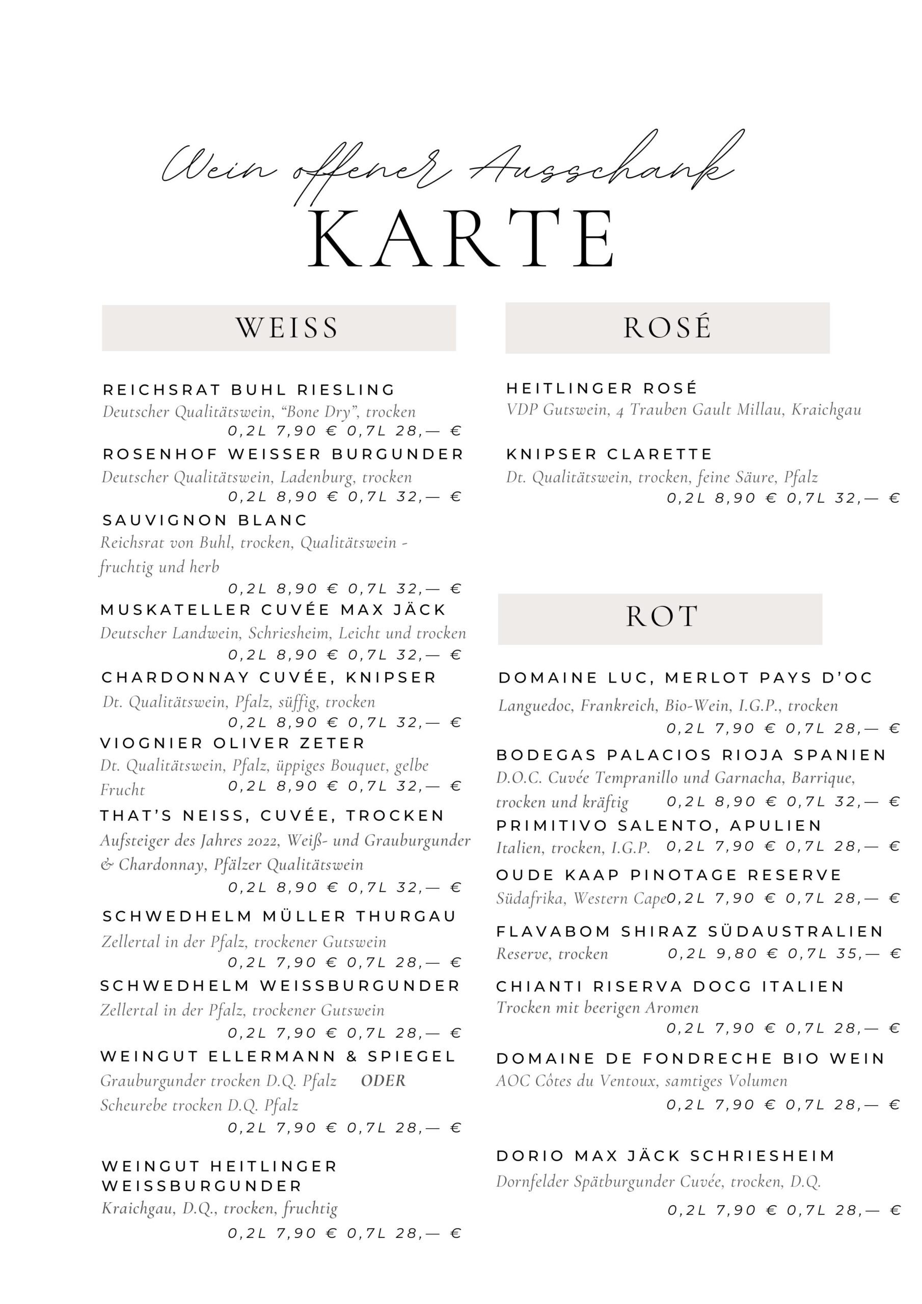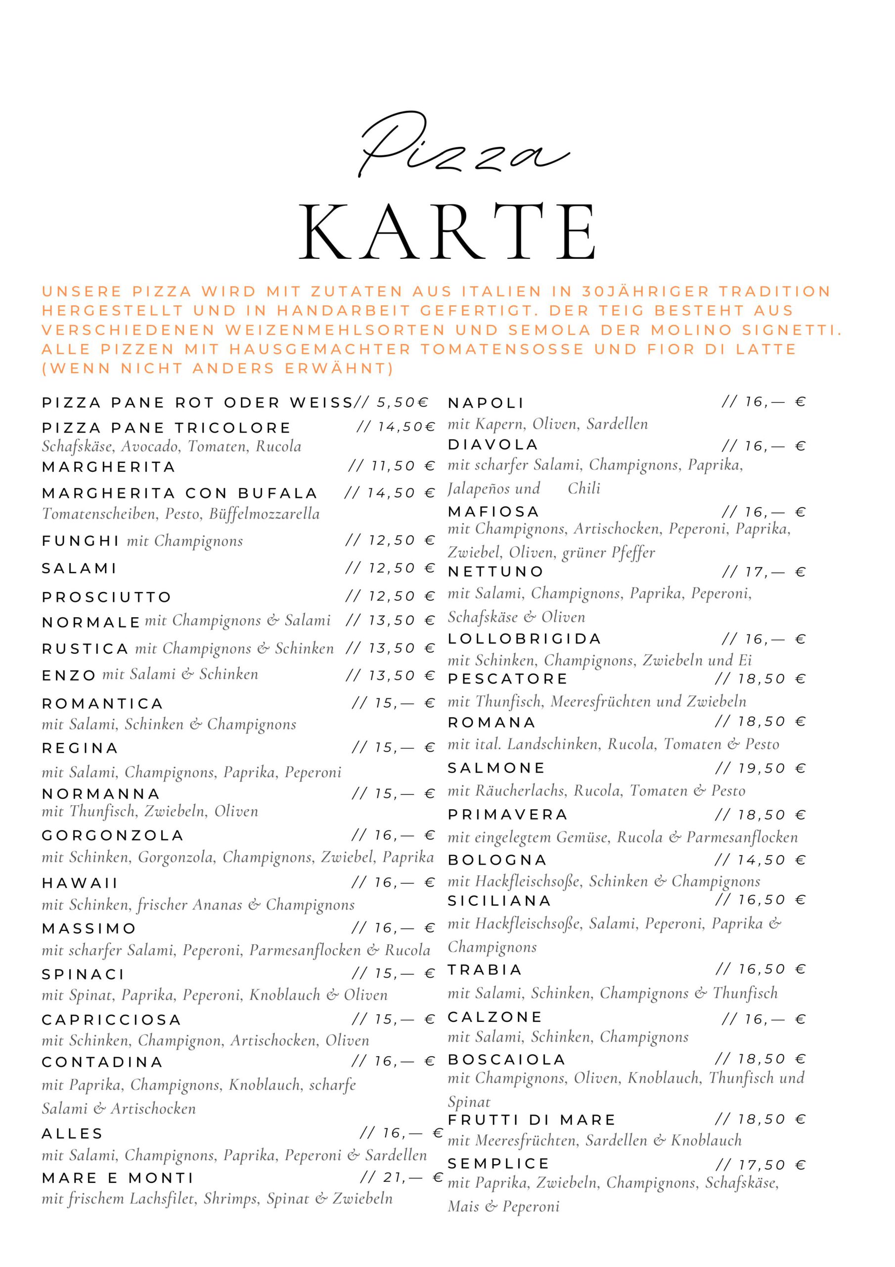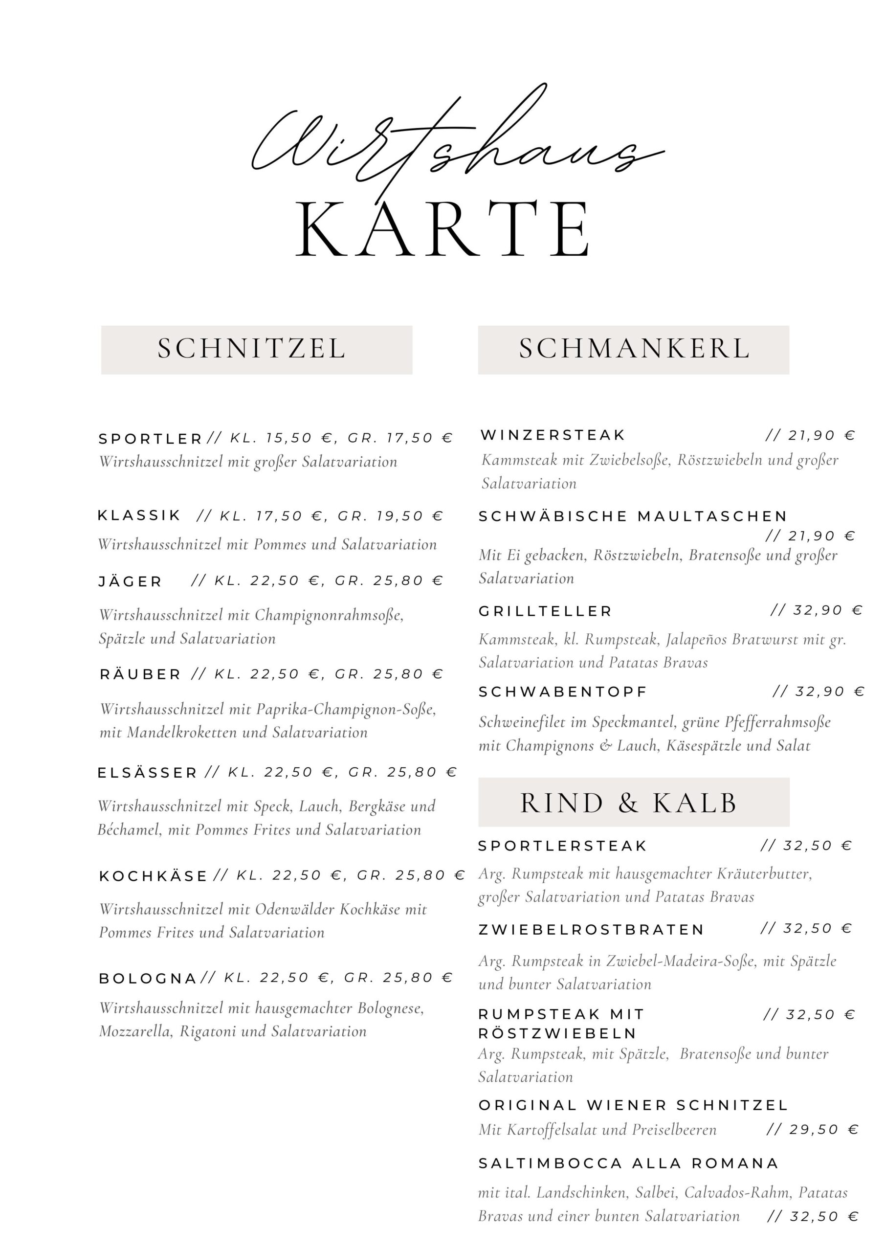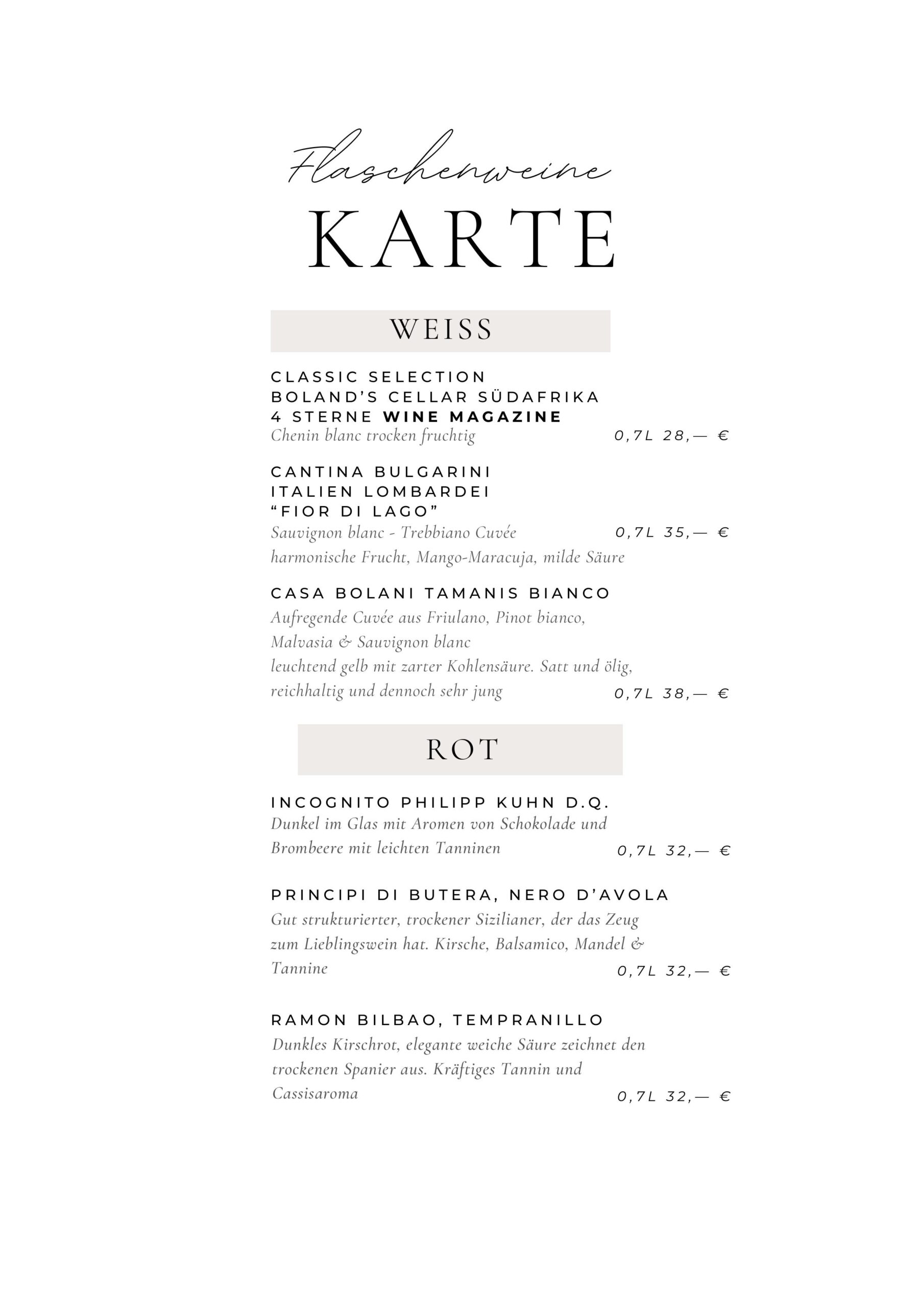 „Im Restaurant oder mit Reservierung. Sie können immer zu unseren Öffnungszeiten unsere Speisen bestellen.“